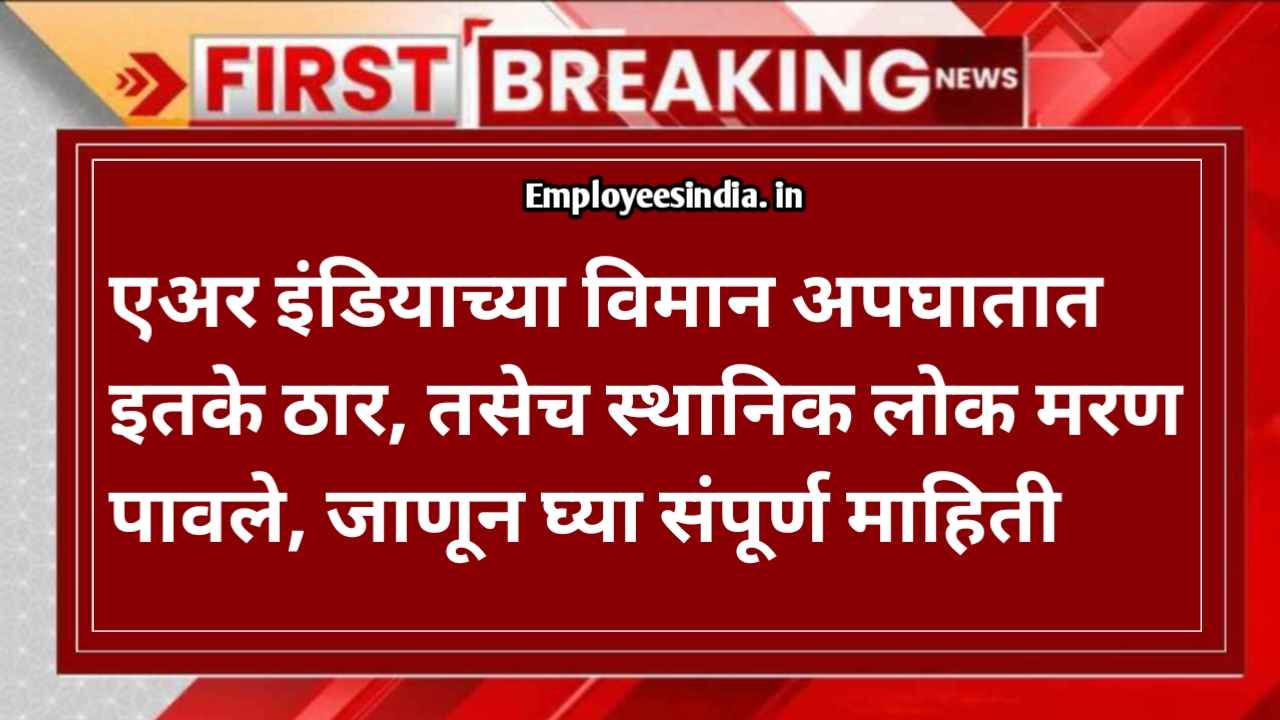 Ahmedabad Plane Crash update :- नमस्कार मित्रांनो गुरुवारी (12 जून 2025) दुपारच्या सुमारास अहमदाबादहून लंडनला जाणारी एअर इंडिया विमान क्रॅश झाली. न्यूज एजन्सी असोसिएटेड प्रेसच्या वृत्तानुसार, विमानातील कोणीही जिवंत नाही. विमानातील सर्व 241 लोक मरण पावले. उड्डाणानंतर लवकरच विमान क्रॅश झाले. या अपघातात एक व्यक्ती जिवंत राहिली आहे. पोलिस आयुक्तांनी याबद्दल माहिती दिली.