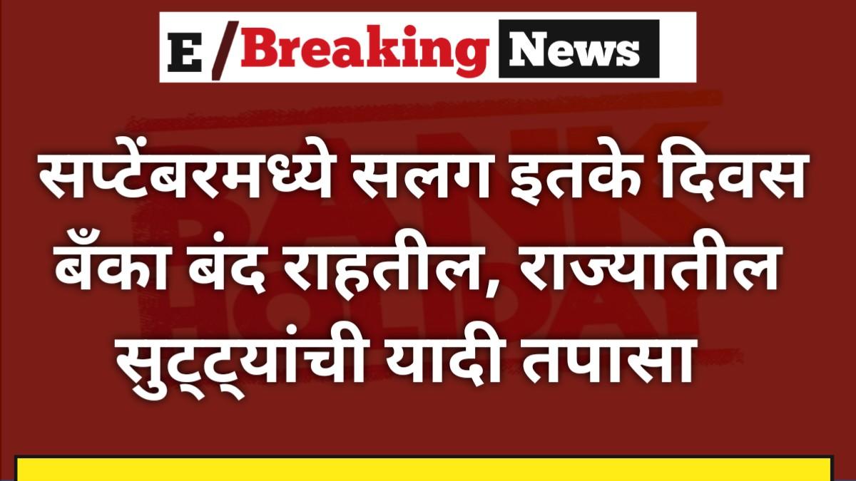 ग्राहकांना बँकेत जाण्यापूर्वी राज्यानुसार सुट्ट्यांची यादी तपासण्याचा सल्ला देण्यात येत आहे. वेगवेगळ्या राज्यांमध्ये सुट्ट्या वेगवेगळ्या असतात.तुम्हाला तुमच्या बँकेशी संबंधित कामाचे नियोजन करावे लागेल.Bank Holidays in September