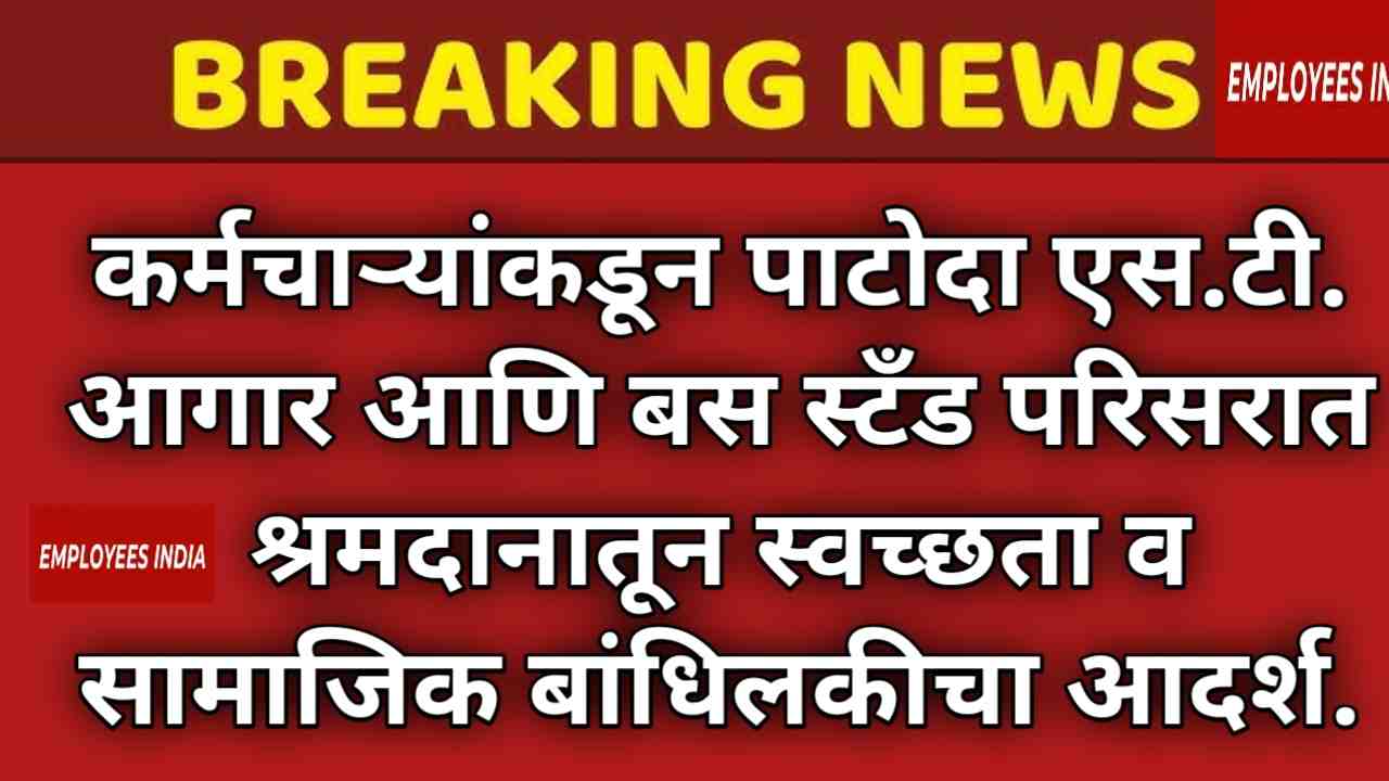 ST Employees news : आज पाटोदा येथील एस.टी. आगार व बस स्थानक परिसरात सर्व एस.टी. कर्मचाऱ्यांच्या सहभागातून व्यापक श्रमदान कार्यक्रम राबविण्यात आला. प्रवासी नागरिकांना स्वच्छ, सुरक्षित आणि सुव्यवस्थित सेवा मिळावी या उद्देशाने राबविण्यात आलेल्या या उपक्रमाला कर्मचाऱ्यांकडून उत्स्फूर्त प्रतिसाद मिळाला.