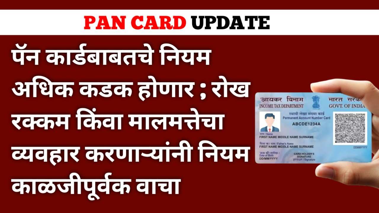 Pan card update march :- सरकार मोठ्या व्यवहारांची तपासणी वाढवण्याची तयारी करत आहे. नवीन मसुदा नियमांनुसार, आता अनेक उच्च-मूल्याच्या व्यवहारांसाठी पॅन कार्ड देणे अनिवार्य असेल. उद्दिष्ट स्पष्ट आहे: कर पारदर्शकता आणि रोख व्यवहारांवर नियंत्रण.